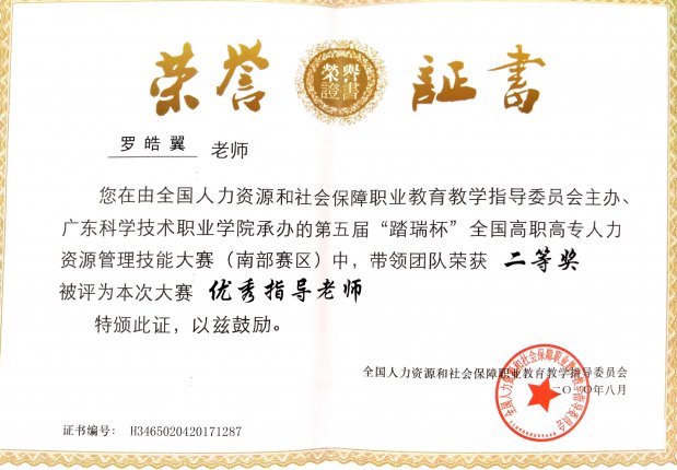 喜报:恭喜罗皓翼、杨芸老师指导学生在“全国高职高专人力资源管理技能大赛”中获“二等奖”